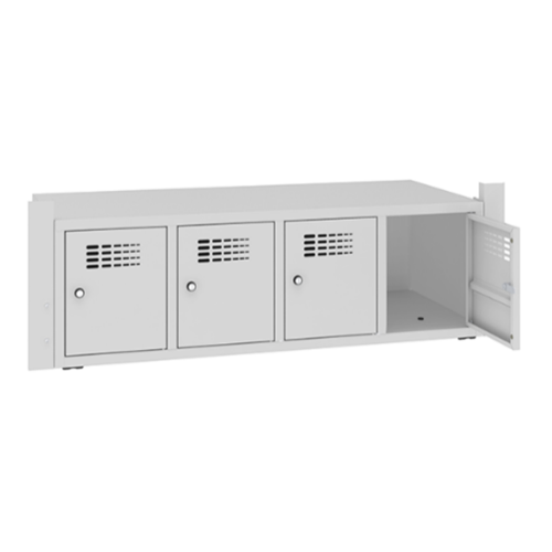 Kisrekeszes fémszekrény ülőpaddal, elsősorban a cipők biztonságos tárolására. Az ajtó alapfelszereltségként cilinderzárral van ellátva, igény szerint lakatkilincsel, vagy felár ellenében más típusú zárás is lehetséges megrendelni. Minden zárhoz 2 kulcs a készletben. Kérésre az öltözőszekrény és a cipőtartó szekrény azonos kulccsal is rendelhető, ekkor ugyanaz a kulcs nyitja mindkét szekrény ajtaját. A szekrény belső méretei (Ma x Sze x Mé): 285 x 210 x 400 mm.