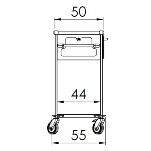 - 4x műanyag görgő, d=125 mm; 2x fék; műanyag sarokütközők