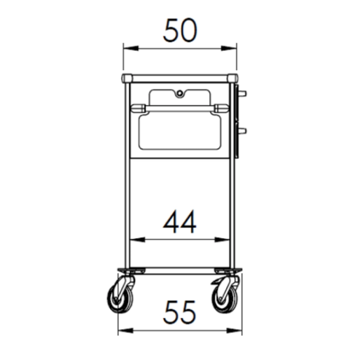 - 4x műanyag görgő, d=125 mm; 2x fék; műanyag sarokütközők
