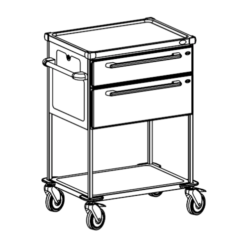 Kórházi kocsi fiókokkal.