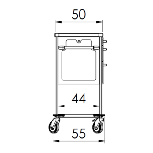- 4x műanyag görgők d=125 mm; 2x fék; műanyag sarokütközők
