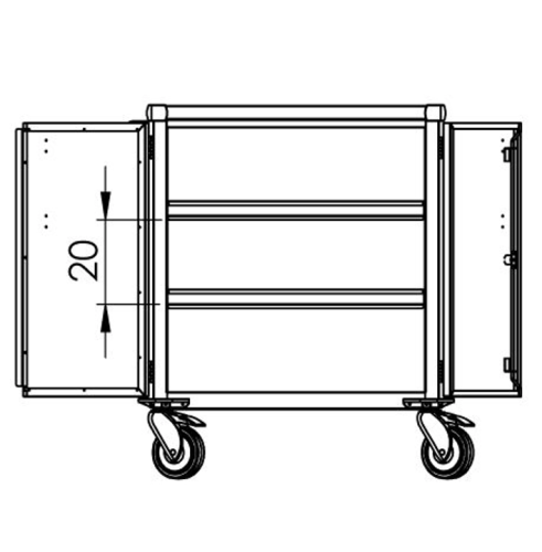 - munkalap: rozsdamentes acél AISI304 - magasság 12 mm, védősarkokkal; teherbírás: 20 kg