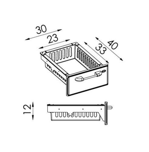 - porálló kosaras fiók: kompakt műanyag előlap (ABS); 1/2 MS MINI kosár (10 kg kapacitás); elválasztókkal osztható
