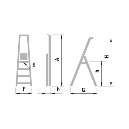 Egyoldalas alumínium fellépő létra, 1 x 3 lépcsőfok, beleértve a felső platformot is. A lépcsőfokok szélessége 13 cm. Egyéb paraméterek lásd. táblázat a termékképeken. A fellépő polccal - szerszámtartóval van ellátva, vödörtartóval, kihúzható kapaszkodóval és csúszásmentes lábvégekkel. A felső platform horganyzott, csúszásgátló barázdákkal.