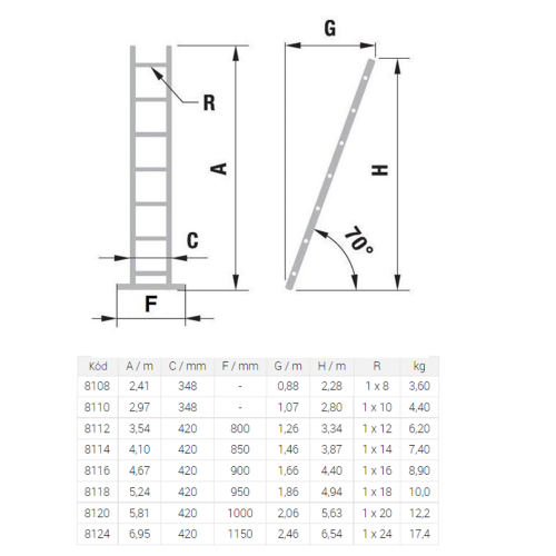 Egyrészes alumínium létra 81xx - típusok 1x8-tól 1x24-ig