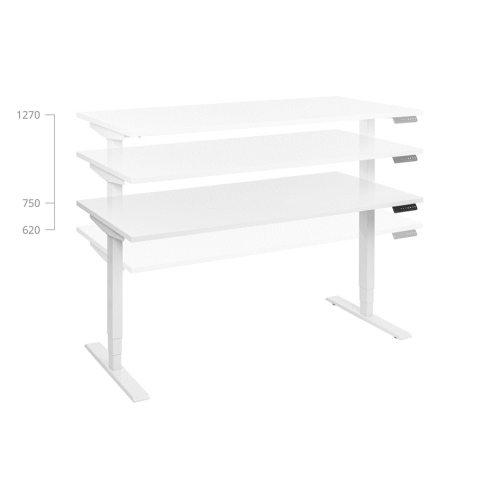 Állítható magasságú asztal fém vázzal és fa asztallappal. Elektromosan állítható asztal, két elektromotorral. A magasság 620 mm és 1270 mm között állítható, 32 mm/másodperc sebességgel. Az emelőmechanizmus háromrészes. Az asztal színe három árnyalat és szélesség közül választható. A konstrukció színei: fehér RAL 9016, fekete RAL 9005 és szürke RAL 9006. A váz állítható magasságú műanyag tappancsokkal van ellátva. Az asztallap méretei: 1200 x 800 x 25, 1400 x 800 x 25 és 1600 x 800 x 25 mm. Az asztal memóriafunkcióval (4 pozíció), USB töltővel és ütközésgátló funkcióval van felszerelve. A termék TÜV tanúsítvánnyal rendelkezik. Az asztal teherbírása 80 kg.