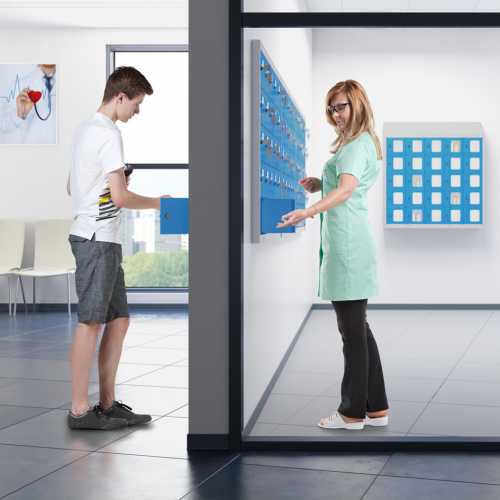 Fém értékmegőrző szekrény kis rekeszekkel. Megfelelő kis tárgyak megőrzésére. A szekrény minden ajtajához 2 db kulccsal. A szekrény falra szerelhető. Az ajtók a szekrény mindkét oldaláról kinyithatók, hozzáférés a rekeszbe mindkét oldalról lehetséges.