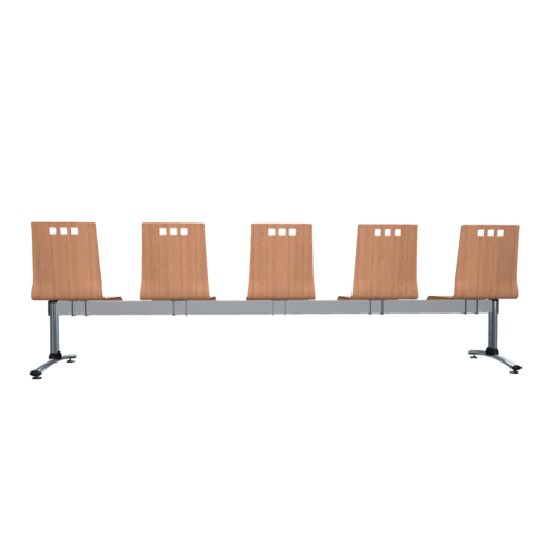 Elegáns 5 ülőhellyel rendelkező pad, ergonomikus fa üléssel. A megrendelőnek lehetősége van a fa pácszín választására. Az ülés szélessége 400 mm. Az ülések alatti szerkezet szürke, a lábak krómozottak. Megrendelő kérésére a termék módosítható, lehetőség van lecserélni az ülőhelyet egy kisasztalra stb. Terhelhetősége ülésenként 130 kg.