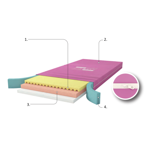 A matrac szélei - A megnövelt sűrűségű habból készült megerősített matracszélek növelik a stabilitást és megkönnyítik a páciens mozgatását (leülés és felállás).