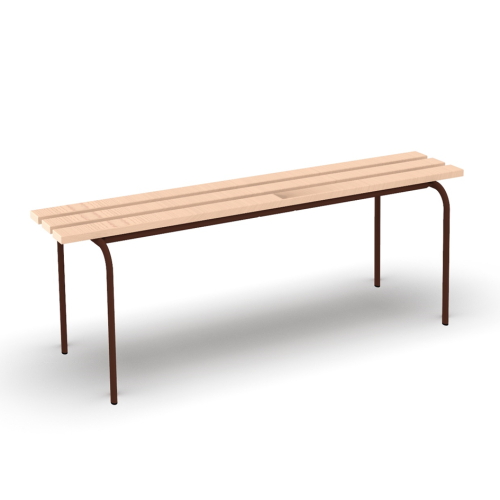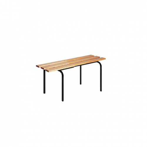 Öltözőpad fém csőszerkezetű vázzal és fa lécekkel.