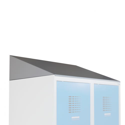 400 mm széles ferdetető fém öltözőszekrényre. Utólag is felszerelhető. Használatával a szekrény magasabb lesz 200 mm-el a szekrény legmagasabb pontjában. A ferdetető használatával megakadályozza különböző tárgyak tárolását a szekrény tetején.
