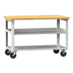 Professzionális görgős műhelyasztal polcokkal.