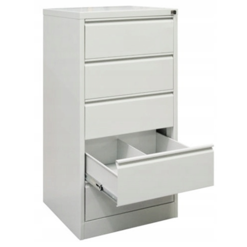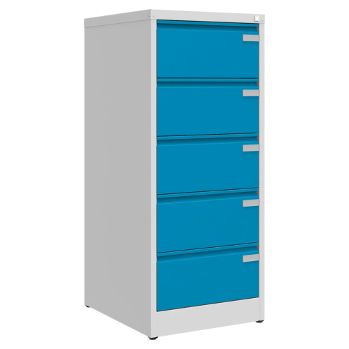 Zárható fiókos fémszekrény horizontális A5-os formátumú függőmappák vagy dokumentumok tárolására. A fiókok kihúzhatók a dupla-golyós fióksínnek köszönhetően. A szekrény felborulásának megakadályozása miatt, egyszerre csak 1 fiók lehet kihúzva. A fiók teherbírása 50 kg. A szekrény központi zárral, 2 db kulccsal. Öntapadós névtartó címkékkel és kiegyenlítő ékekkel kerül kiszállításra.