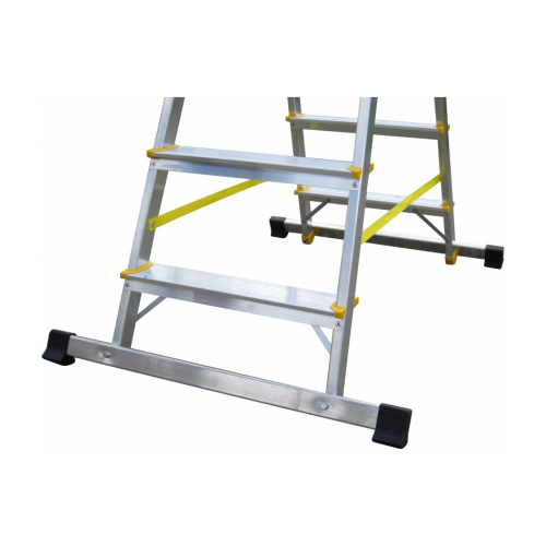 Lépcsőfokok száma 3-től 8-ig. Kétoldalas alumínium fellépő lépcső stabilizátorokkal burkolatlan felületekre. A létra otthoni használatra alkalmas. Az egyes változatok paramétereit lásd. táblázat a termékképek között.