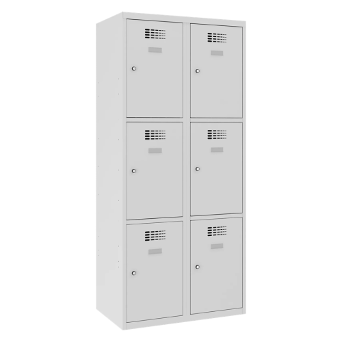 Fémszekrény kis rekeszekkel, 2 kulccsal minden ajtóhoz a készletben. Az összes ajtón szellőző nyílásokkal és öntapadós névtáblatartóval. A szekrény tökéletesen megfelel kisebb tárgyak megőrzésére.