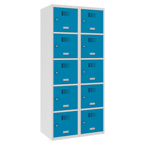 Fémszekrény kis rekeszekkel, 2 kulccsal minden ajtóhoz a készletben. Az összes ajtón szellőző nyílásokkal és öntapadós névtáblatartóval. A szekrény tökéletesen megfelel kisebb tárgyak megőrzésére.