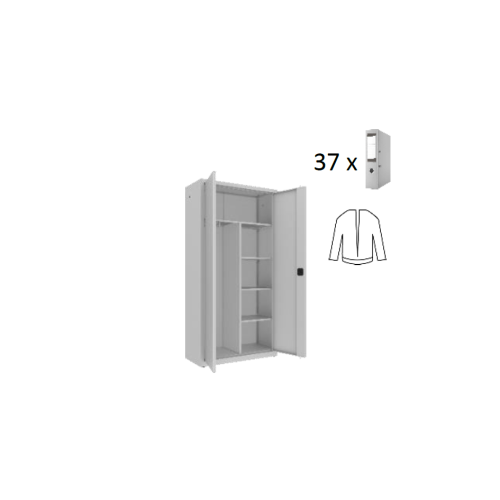 Szekrény gardrób rekesszel, 1990 x 1000 x 435 mm. A szekrény 2 db kulccsal, 1 hosszú merev polccal és 3 rövid polccal.
