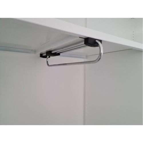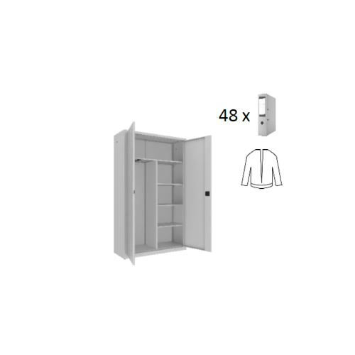 Szekrény gardrób rekesszel, 1990 x 1200 x 435 mm. A szekrény 2 db kulccsal, 1 hosszú merev polccal és 3 rövid polccal.