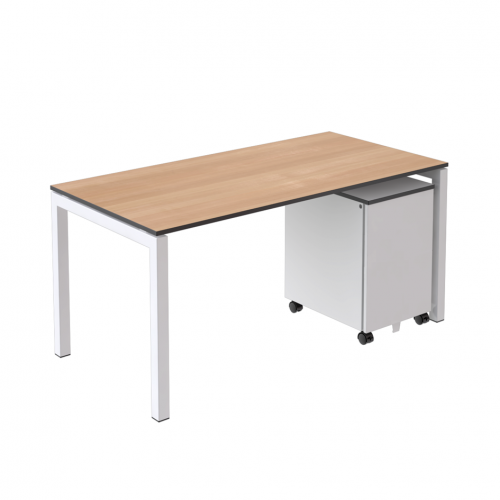 Fém, központi zárral rendelkező 2-fiókos görgős konténer irodai asztal alá. Két verzióban kapható. Az alap kialakítás fémből készült konténer a tetején laminált lappal. A laminált lap több színben rendelhető. A fiókok kihúzhatók a golyós fióksínnek köszönhetően, 45 kg teherbírással / fiók. A szekrény felborulásának megakadályozása miatt, egyszerre csak 1 fiók lehet kihúzva. Fiókok mérete 330 x 420 mm, 1 alacsony fiók, 1 A4-es fiók.
