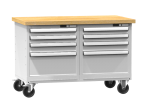 Professzionális görgős műhelyasztal zárható fiókokkal.