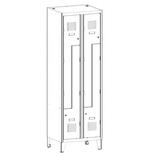 Z-ajtós fém öltözőszekrény lábakkal. Részletes leírás