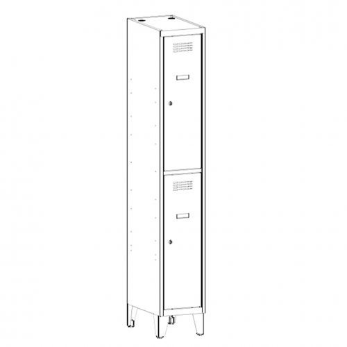 Prémium lábakon álló fém öltözőszekrény rövid ajtókkal. Az acéllemezből készült fém öltözőszekrény zárható, 2 kulccsal a készletben. A belső tartozékok: a felső részben ruhaakasztó rúd - 2 db kampóval, öntapadós névtáblatartó.