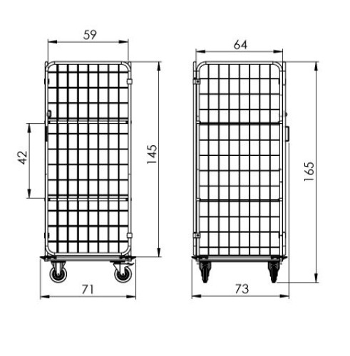 Rácsos szállító kocsi horganyzott kivitelben. A kocsi felszereltsége: 1 x ajtó, amely a kocsi egyik oldalán nyílik, 2 x állítható polc, teherbírás 100 kg. Az alváz horganyzott acéllemez. Kerekek: 2 x fix, 2 x forgó - fékezhető, átmérő 125 mm, műanyag ütközőkkel felszerelve. A termék teljes terhelhetősége 350 kg. A kocsi felár ellenében felszerelhető gyűjtő zsákokkal is.