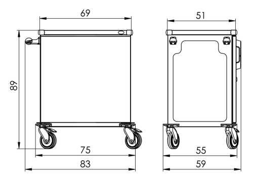 Fém polcos kocsi AISI304 rozsdamentes acélból. A váz rezonancia gátló merevítéssel. A kocsi felső munkafelülete 12 mm-es bemélyedéssel rendelkezik és védősarkokkal van ellátva, teherbírása 20 kg. Az ajtó zárható és porálló. Polcok száma: 3 x fix polc - a magasság nem állítható, teherbírás 30 kg. A kocsi rozsdamentes acél tolókarral is rendelkezik. A kerekek átmérője 125 mm és műanyag ütközőkkel vannak ellátva, 2 kerék fékezhető. A termék terhelhetősége 150 kg.
