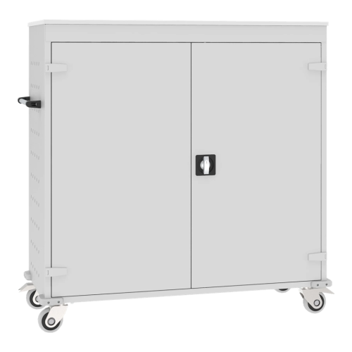 A kocsi áramellátása egy 3 m-es tápkábel segítségével biztosítva. Ezzel az összes aljzat a kocsiba elektromos árammal van ellátva. A töltő kocsi főkapcsolóval, biztosítékkal és szekvenszerrel van felszerelve. Ennek köszönhetően megakadályozza a hálózat túlterhelését és a tárolt elektronika sérülését. A kocsi könnyen áthelyezhető a fogantyú és a gumis kerekek segítségével, 2 kerék fékkel. A kocsi 2-ponton záródó szárnyasajtóval felszerelve. A vázon nyílásokkal a megfelelő szellőzés érdekében. A tárolt eszközök maximális mérete 90 x 340 x 470 mm (17").