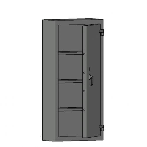Dupla falú biztonsági fémszekrény. Masszív ajtóval és többpontos A kategóriás zárral felszerelve. A szekrény rögzíthető a padlóhoz. Extra felszerelés széles választéka rendelhető, pl.: digitális zár, zárható rekesz a szekrénybe stb.