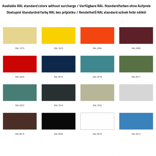 Az áru általában világosszürke színben van raktáron, a többi szín rendelésre készül.